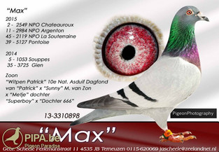De vader van de 848 is dus al een topper met kweken maar niet alleen hij maar ook de duivin die ertegen stond is een topkweker. Ze heet 'Metje' en komt uit het stamvader 'Superboy' die vererfde onder andere: