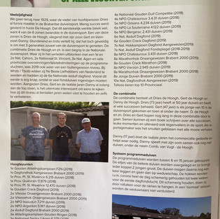 In deze moeilijke tijden probeer je je eigen toch wat te vermaken en toch wel bezig te blijven. We zeggen van de week al tegen elkaar wat zijn we toch blij dat we duiven hebben. Die duiven die in deze moeilijke tijd toch voor de nodige afleiding zorgen. Als je dan met de duiven bezig bent probeer ik toch te zoeken naar goede duiven voor de komende jaren. Ik wil er aan u voorstellen en in deze duif heb ik persoonlijk heel veel vertrouwen. Het is een pas 2 jaar oude doffer die rechtstreeks komt van onze goede vrienden Jaap en Adriaan Scheele ook wel gekend als de Gebroeders Scheele uit Terneuzen. Met deze mannen hebben wij al jaren goed contact en ook samenkweek mee. Deze vriendschap heeft al vele topduiven met zich meegebracht onder andere: